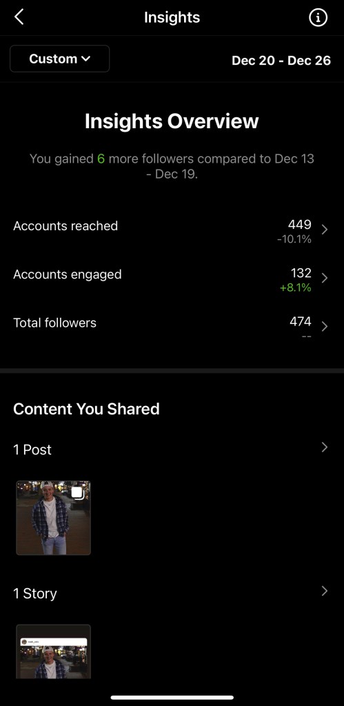Understanding the engagement rate is important because it allows me to understand what brings in followers and shows what my followers are and aren’t interested in. Using those analytics will help me plan better content for the future and will hopefully increase my engagement rate.
