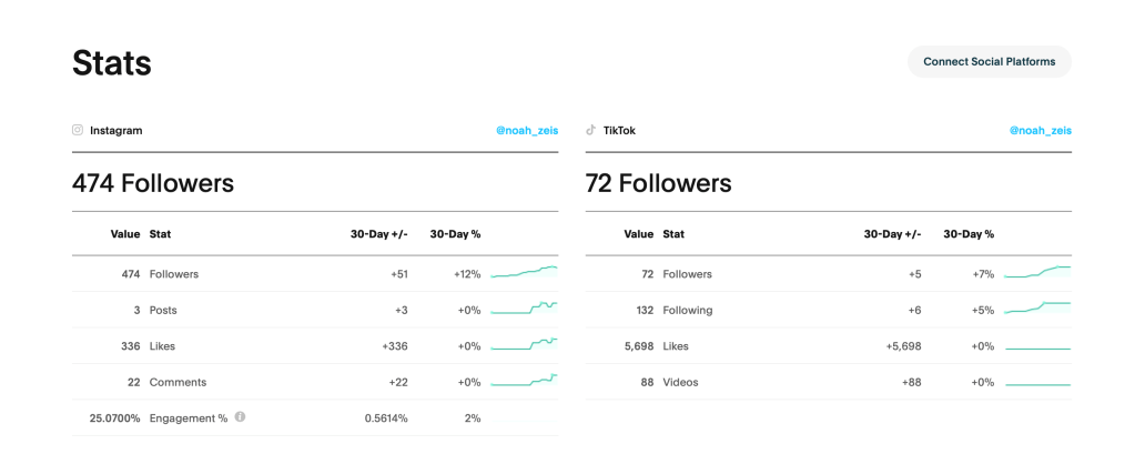 Fohr allows you to link all your social media accounts so that it can analyze all of your statistics for each account, and show an overall trend.