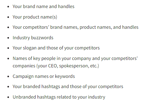 Here is a list of the important keywords and topics that Hootsuite thinks you should monitor and listen for right from the start.